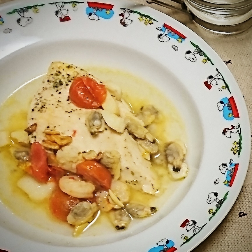 アサリの殻無しでゴミ無し 白身魚でアクアパッツァ レシピ 作り方