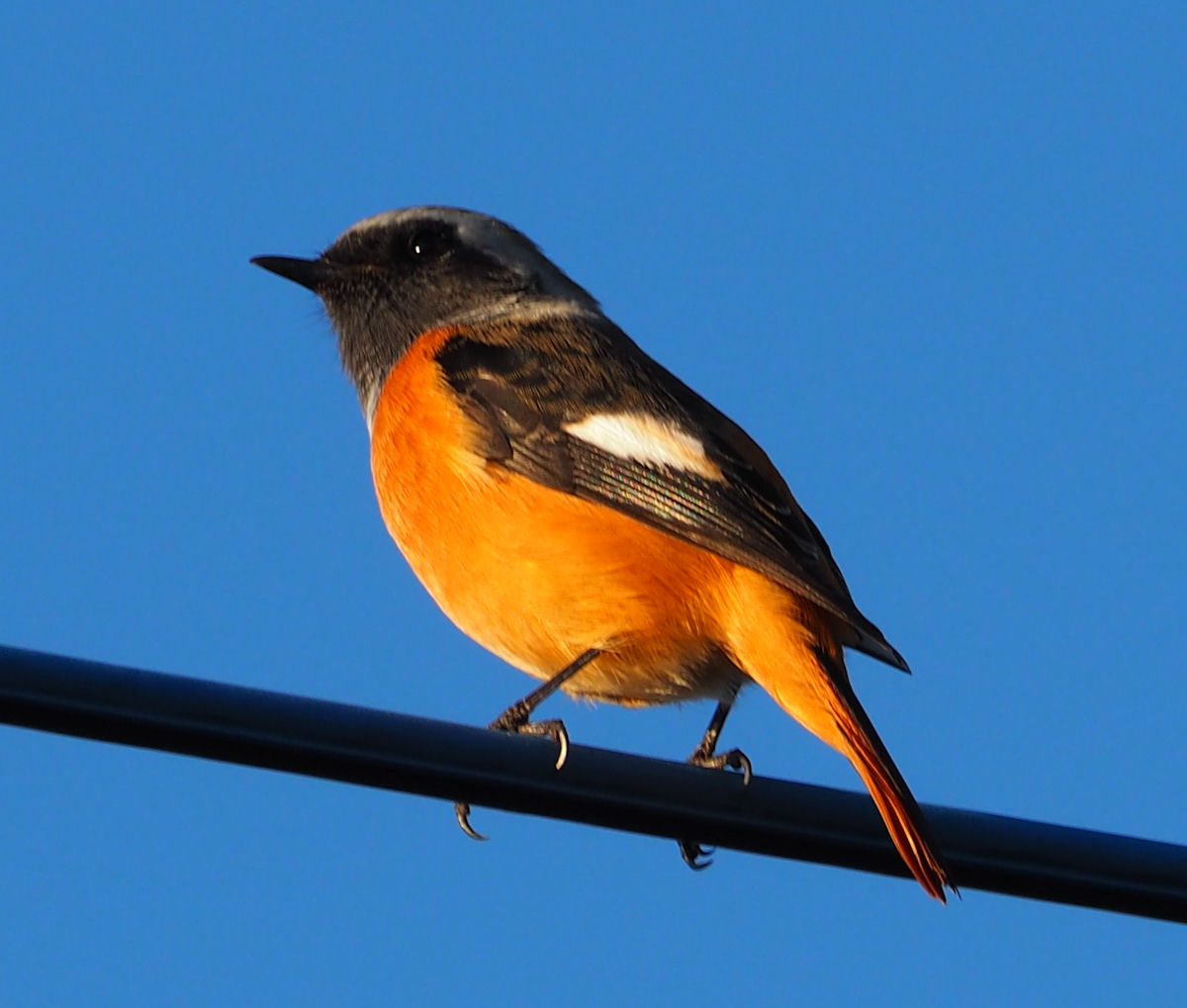 ジョウビタキ オレンジのお腹と青い帽子 野鳥写真図鑑 キヤノン