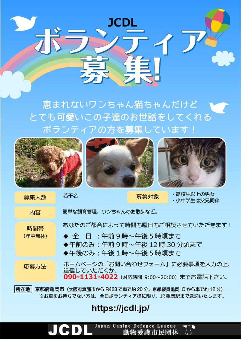 動物愛護団体のスタッフ募集 真剣に動物たちの命と向き合える方募集